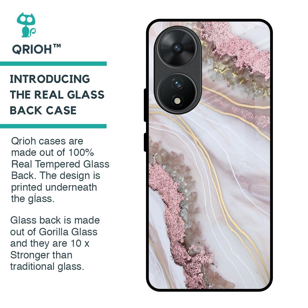 Pink & Gold Gllitter Marble Glass Case for Vivo T2 5G