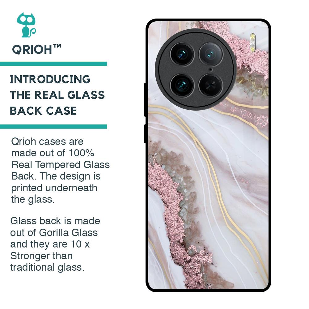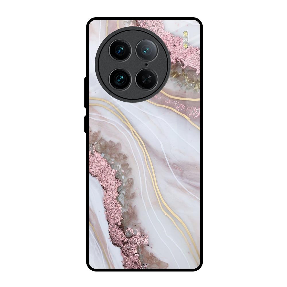 Pink & Gold Gllitter Marble Glass Case for Vivo X90 Pro 5G
