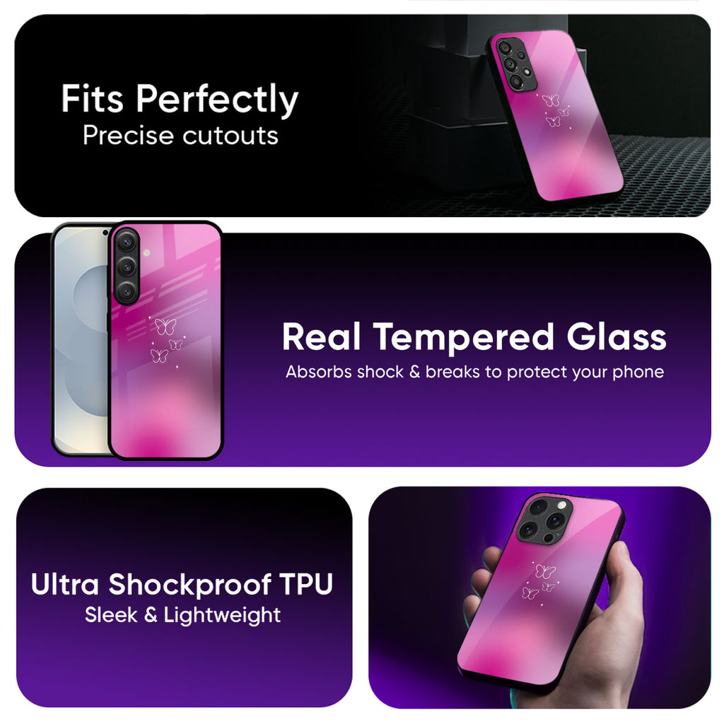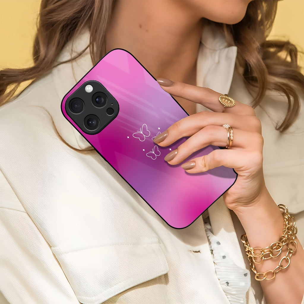 Pink & Purple Butterfly Glass Case
