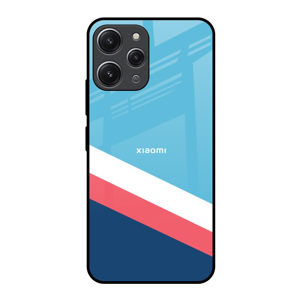 Pink & White Stripes Glass Case For Redmi 12