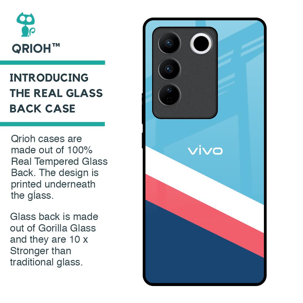 Pink & White Stripes Glass Case For Vivo V27 5G