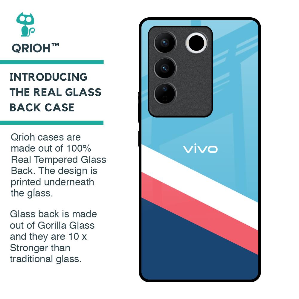 Pink & White Stripes Glass Case For Vivo V27 Pro 5G