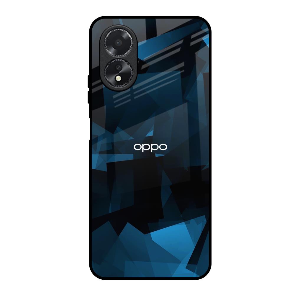 Polygonal Blue Box Glass Case For Oppo A38