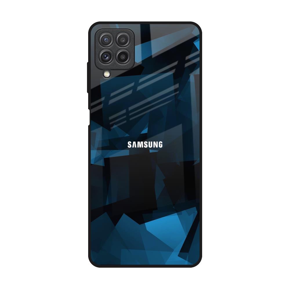 Polygonal Blue Box Glass Case For Samsung Galaxy A22