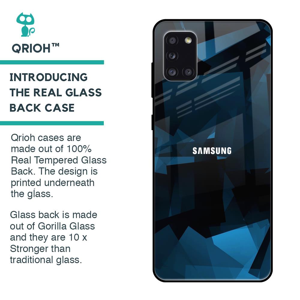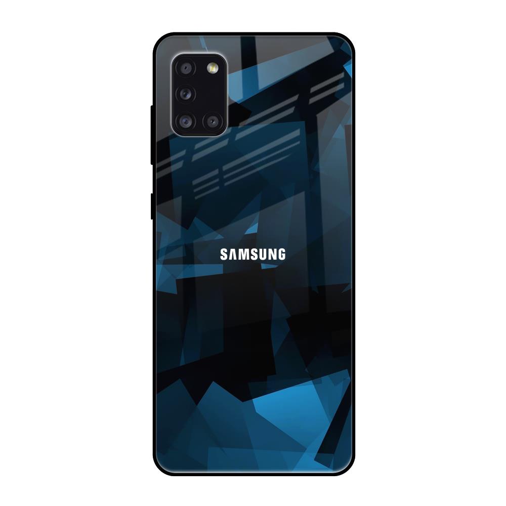 Polygonal Blue Box Glass Case For Samsung Galaxy A31