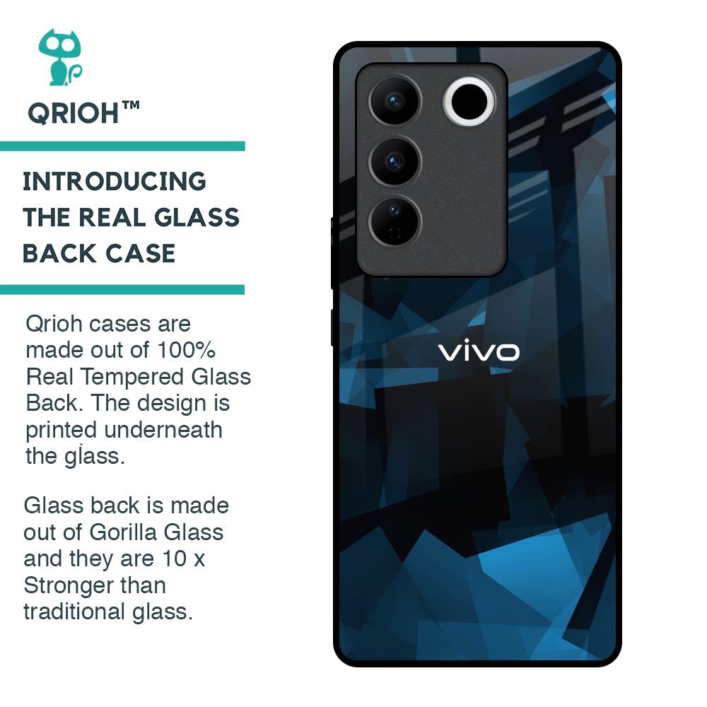 Polygonal Blue Box Glass Case For Vivo V27 5G
