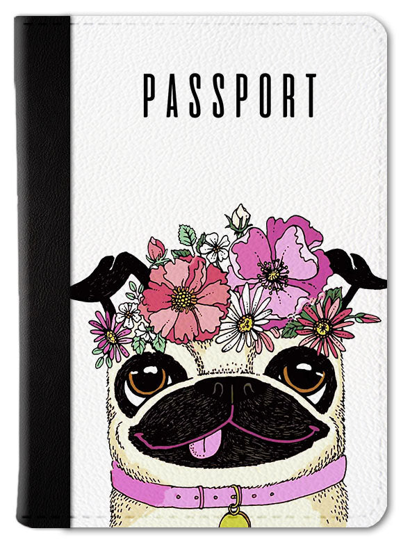 Puggie With Flowers Passport Wallet