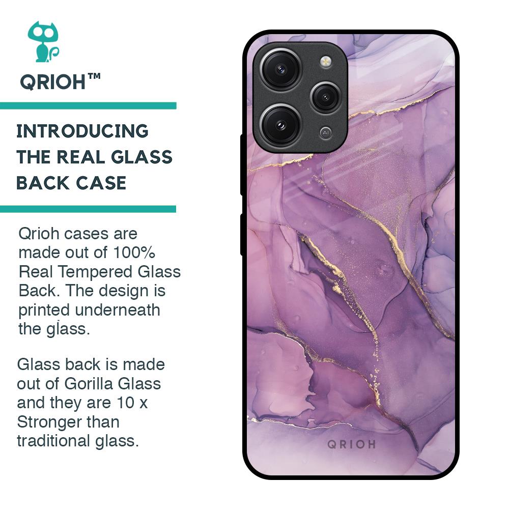 Purple Gold Marble Glass Case for Redmi 12