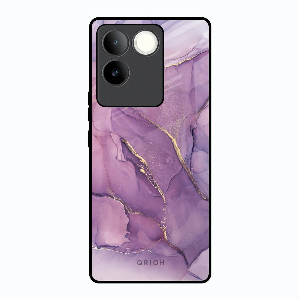Purple Gold Marble Glass Case for Vivo T2 Pro 5G