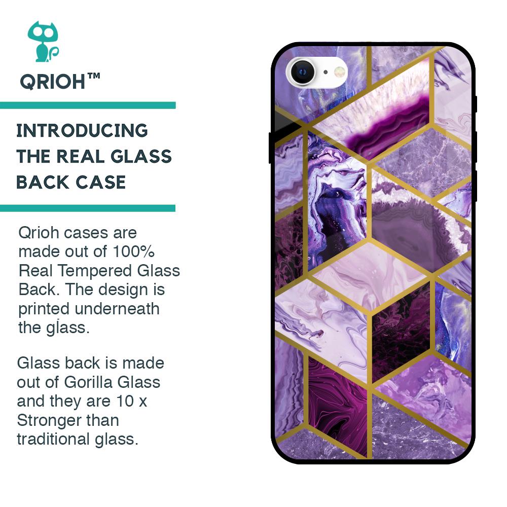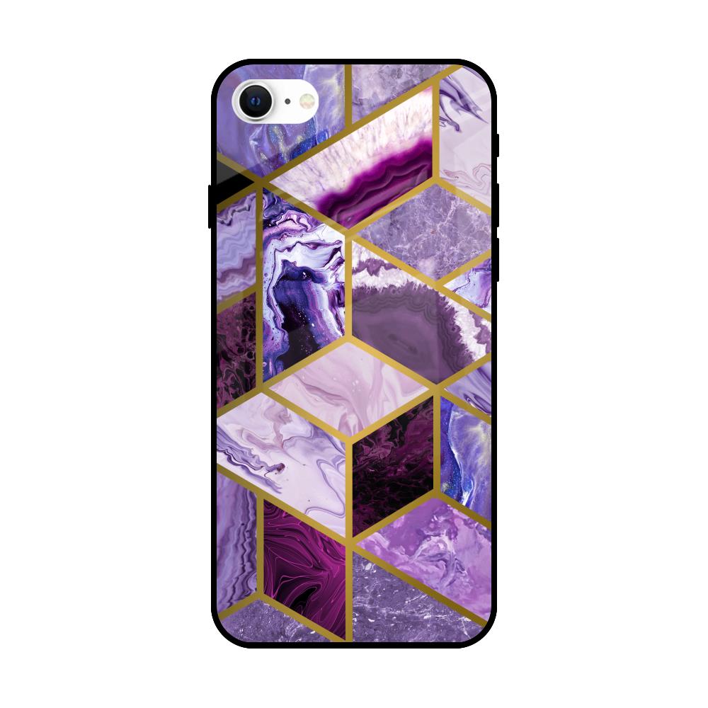 Purple Rhombus Marble Glass Case for iPhone SE 2022
