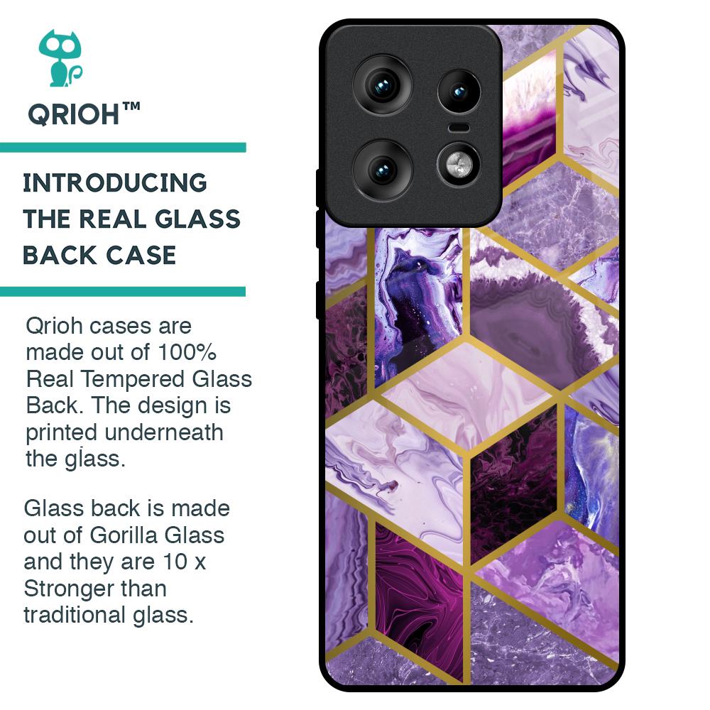 Purple Rhombus Marble Glass Case for Motorola Edge 50 Pro 5G