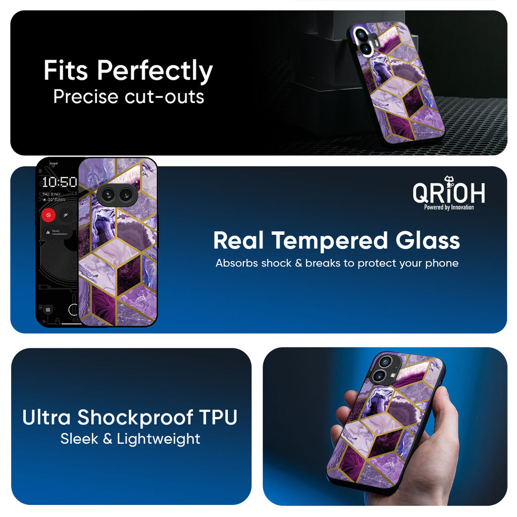 Purple Rhombus Marble Glass Case for Nothing Phone 3a Pro