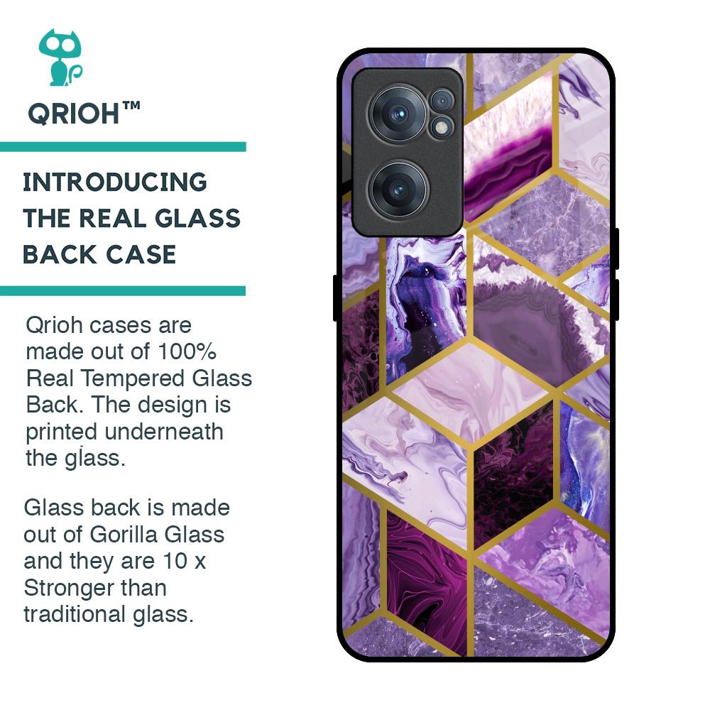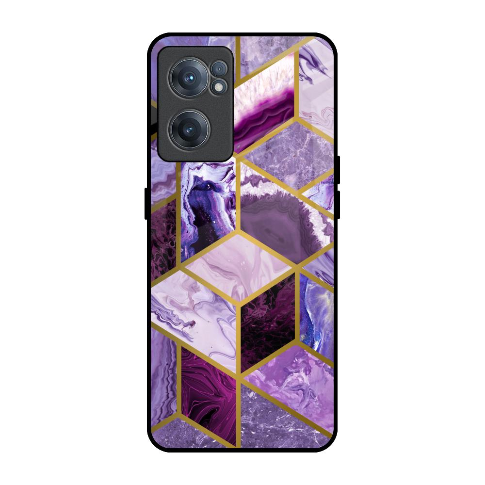 Purple Rhombus Marble Glass Case for OnePlus Nord CE 2 5G