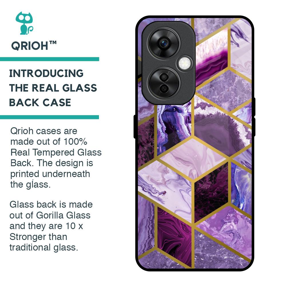 Purple Rhombus Marble Glass Case for OnePlus Nord CE 3 Lite 5G