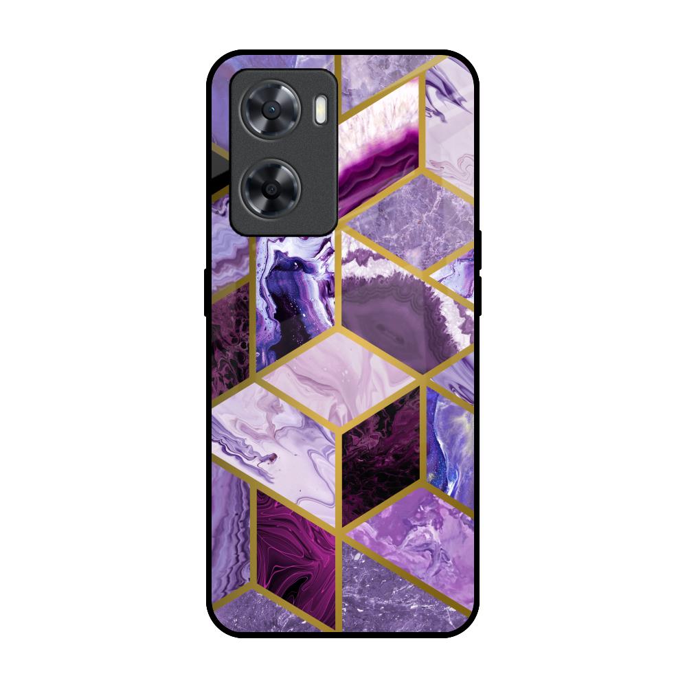 Purple Rhombus Marble Glass Case for OPPO A77s