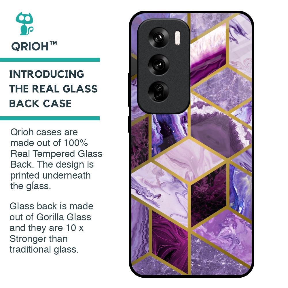 Purple Rhombus Marble Glass Case for Oppo Reno 12 Pro 5G