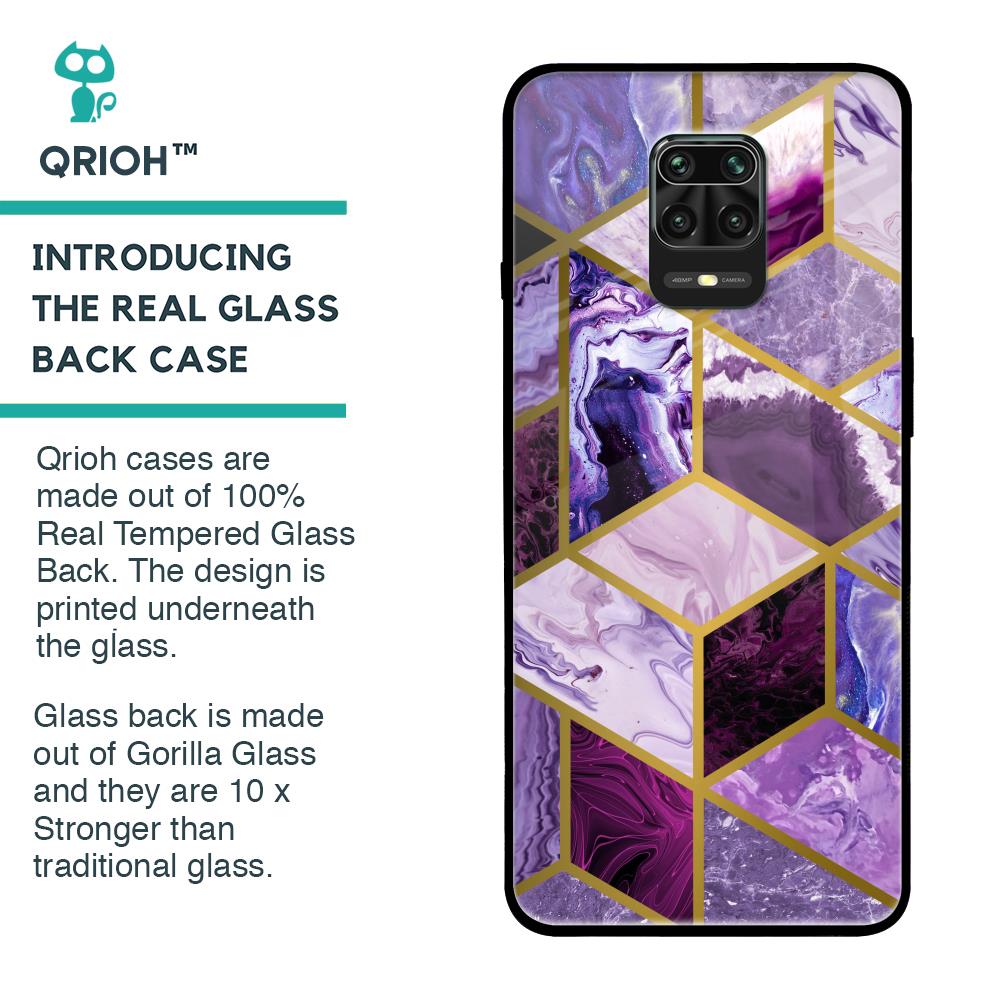 Purple Rhombus Marble Glass Case for Poco M2 Pro