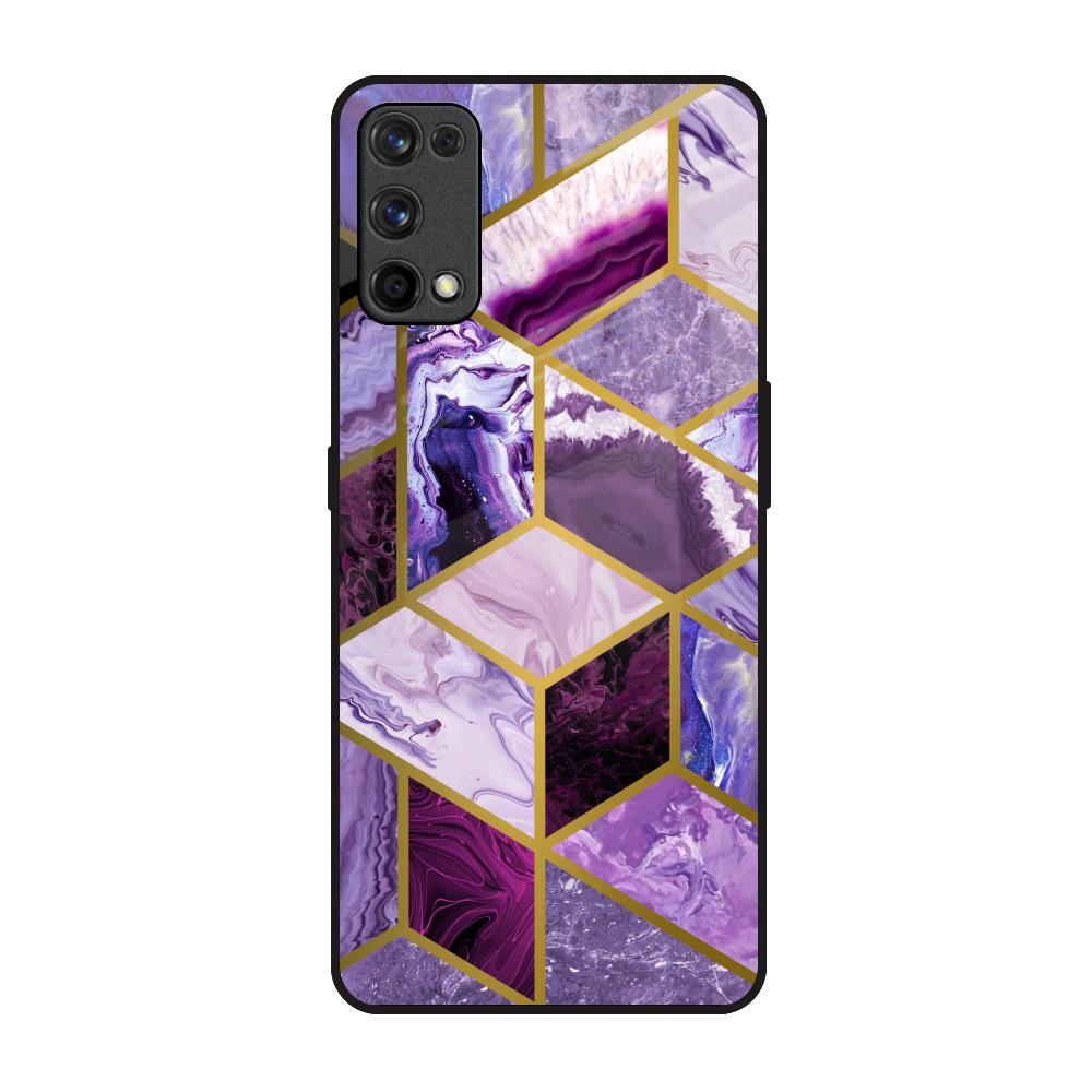 Purple Rhombus Marble Glass Case for Realme 7 Pro