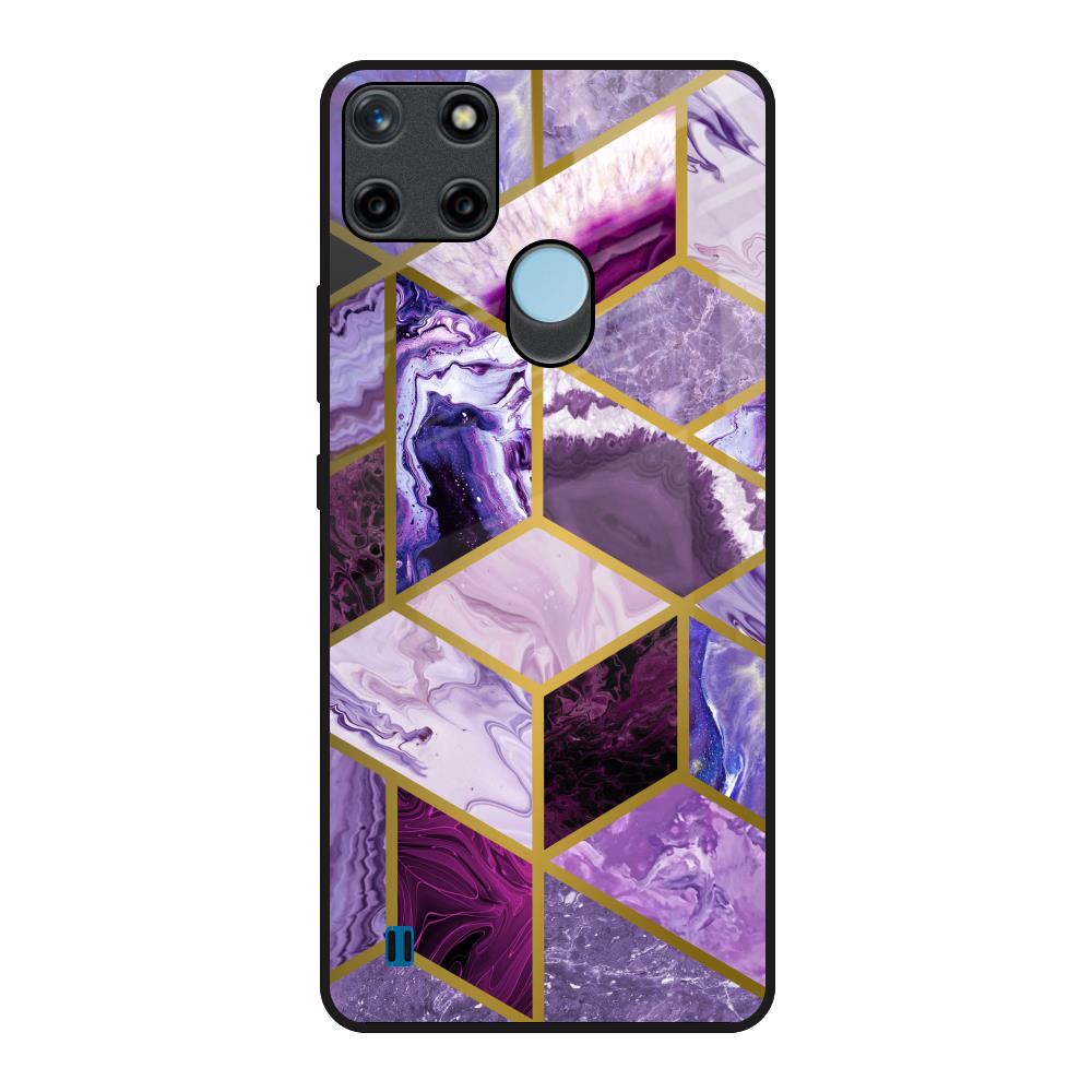 Purple Rhombus Marble Glass Case for Realme C21Y