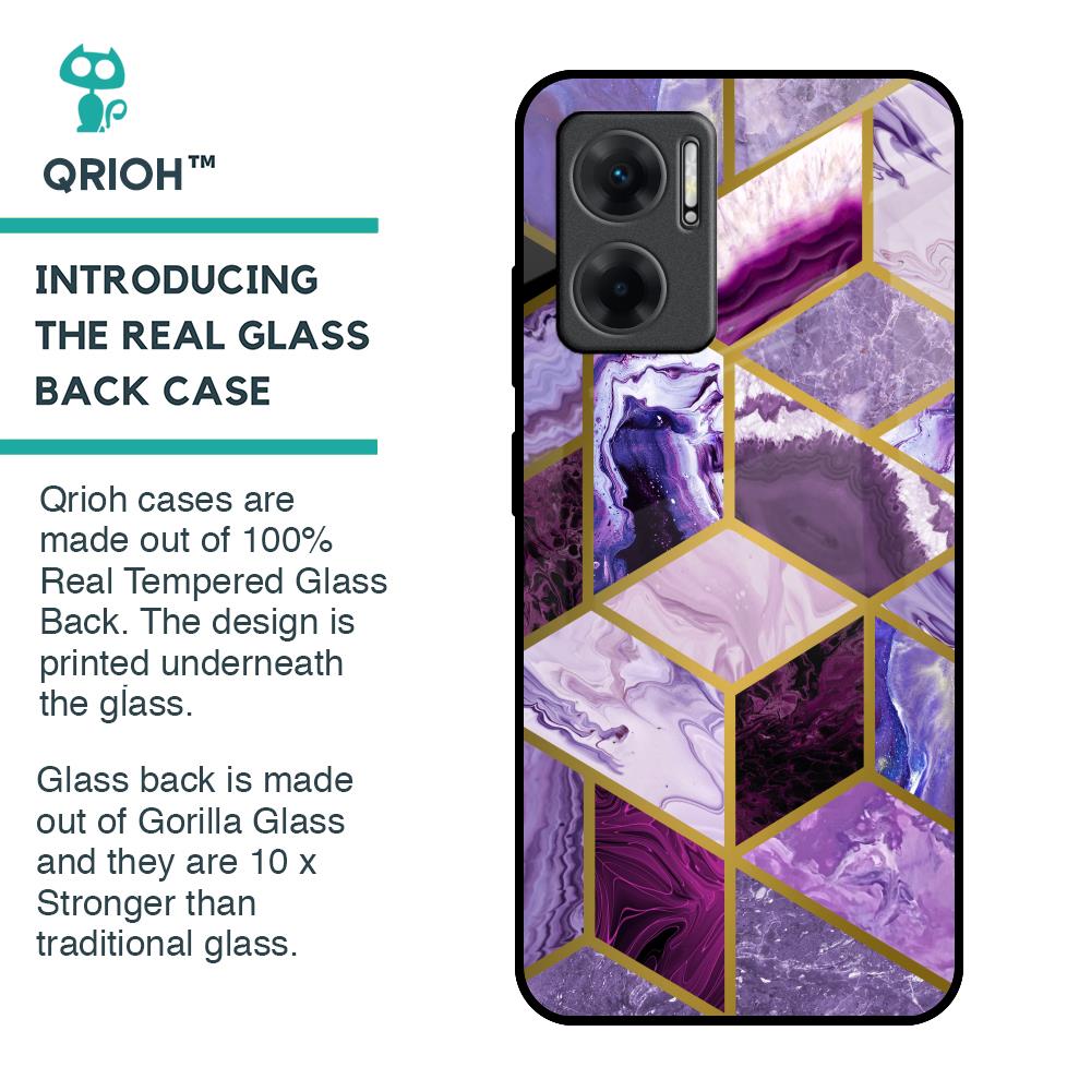 Purple Rhombus Marble Glass Case for Redmi 11 Prime 5G