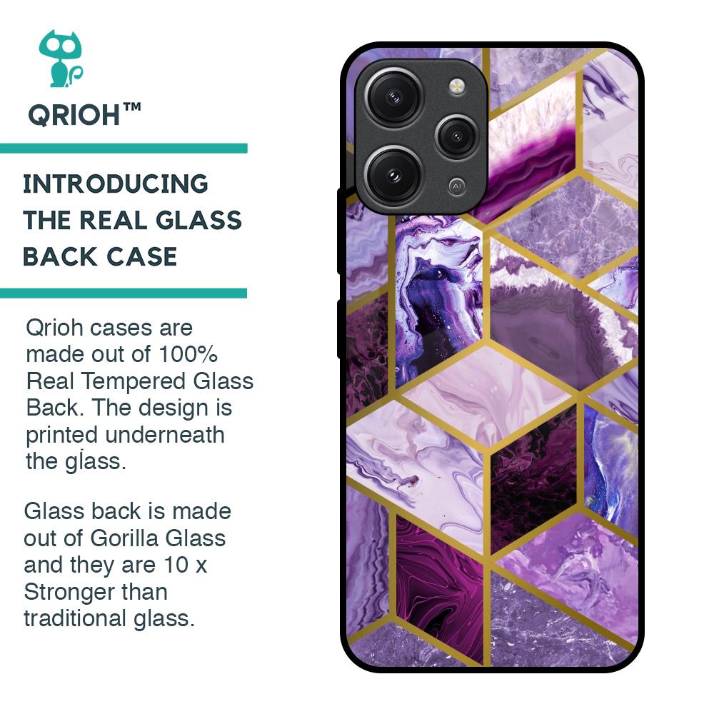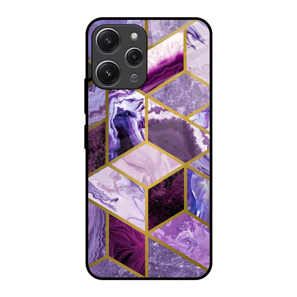 Purple Rhombus Marble Glass Case for Redmi 12