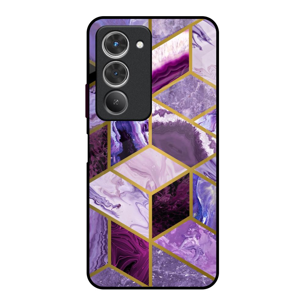 Purple Rhombus Marble Glass Case for Redmi 15 5G