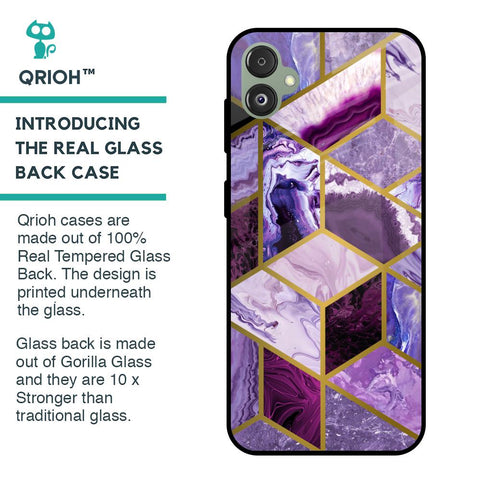 Purple Rhombus Marble Glass Case for Samsung Galaxy F14 5G