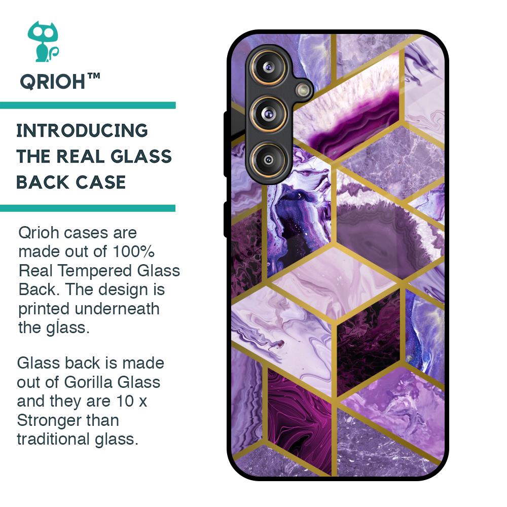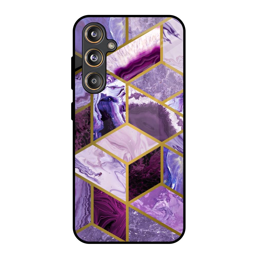 Purple Rhombus Marble Glass Case for Samsung Galaxy F55 5G