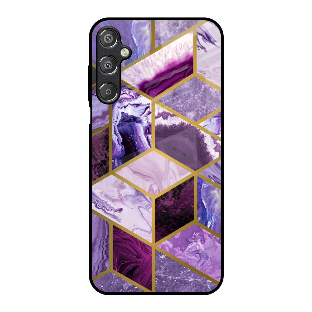 Purple Rhombus Marble Glass Case for Samsung Galaxy M15 5G
