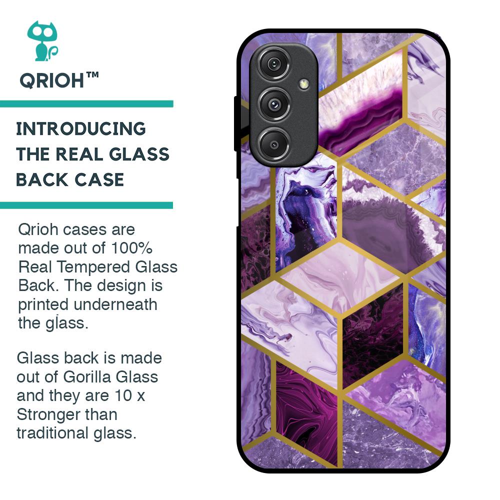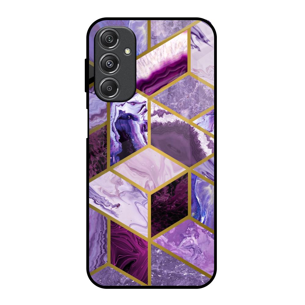 Purple Rhombus Marble Glass Case for Samsung Galaxy M34 5G