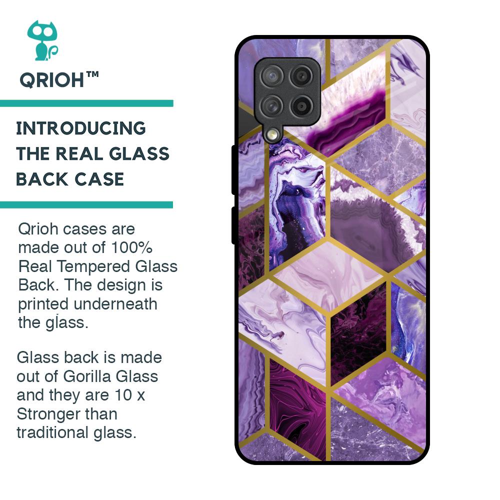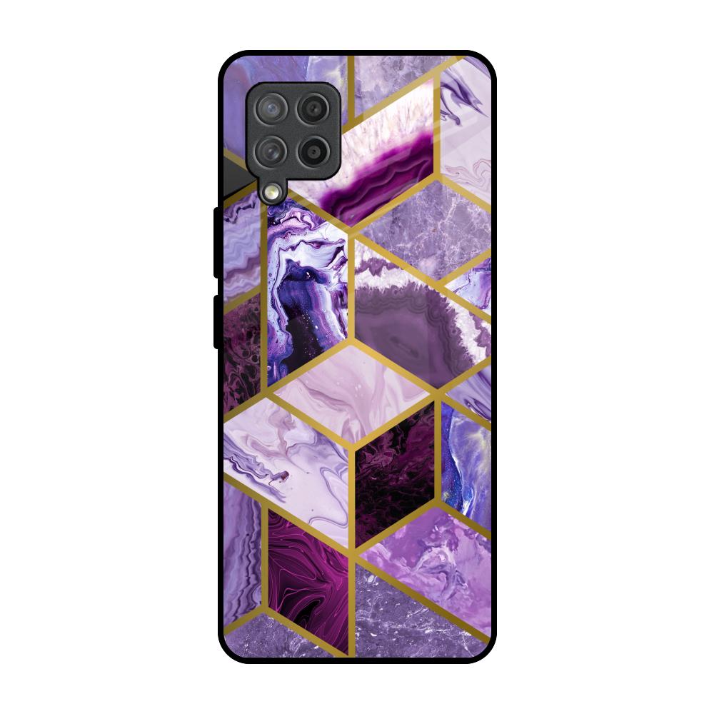 Purple Rhombus Marble Glass Case for Samsung Galaxy M42