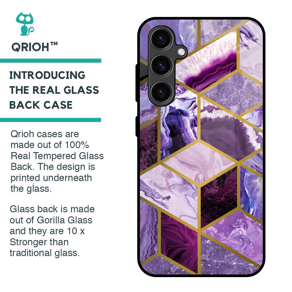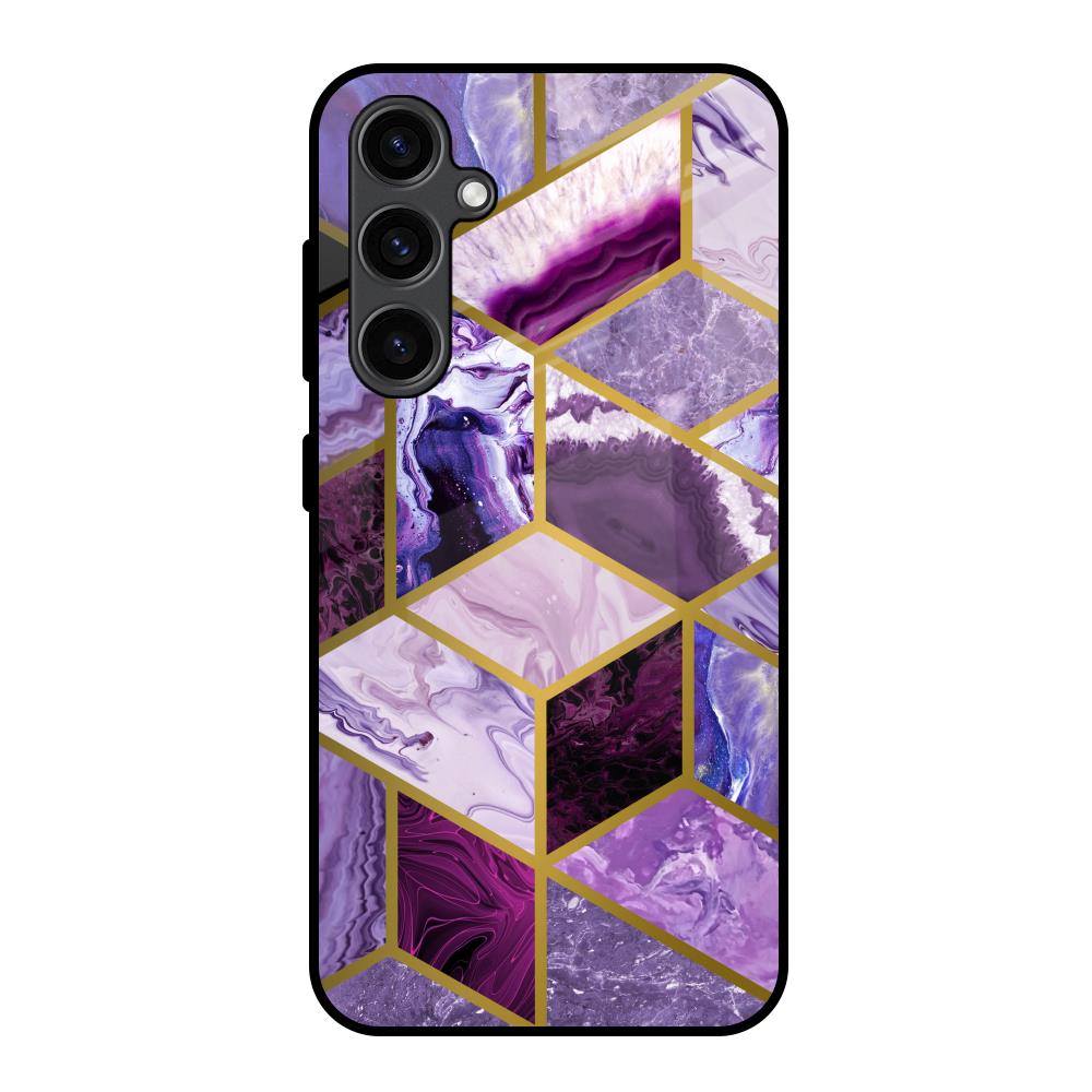 Purple Rhombus Marble Glass Case for Samsung Galaxy S23 FE 5G