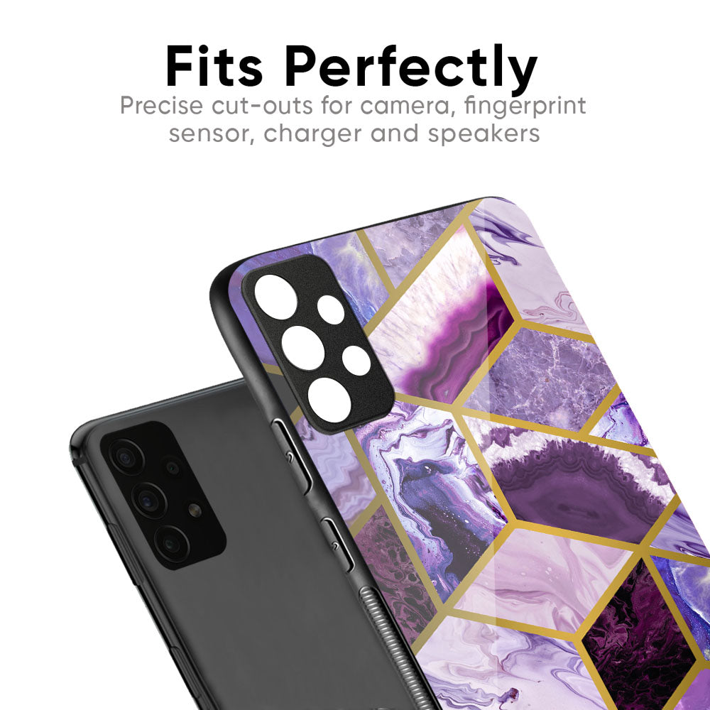 Purple Rhombus Marble Glass Case for Samsung Galaxy S26 Plus 5G