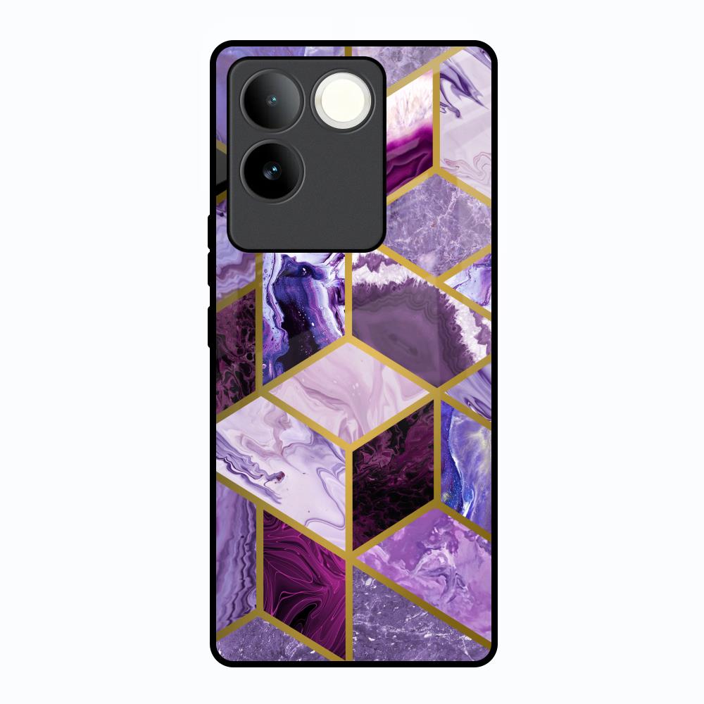 Purple Rhombus Marble Glass Case for Vivo T2 Pro 5G