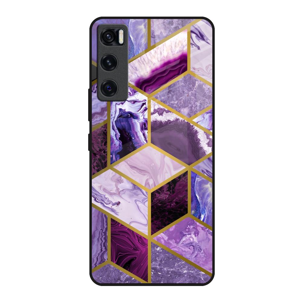 Purple Rhombus Marble Glass Case for Vivo V20 SE