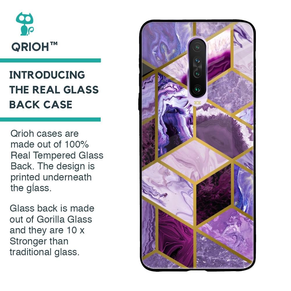 Purple Rhombus Marble Glass Case for Xiaomi Redmi K30