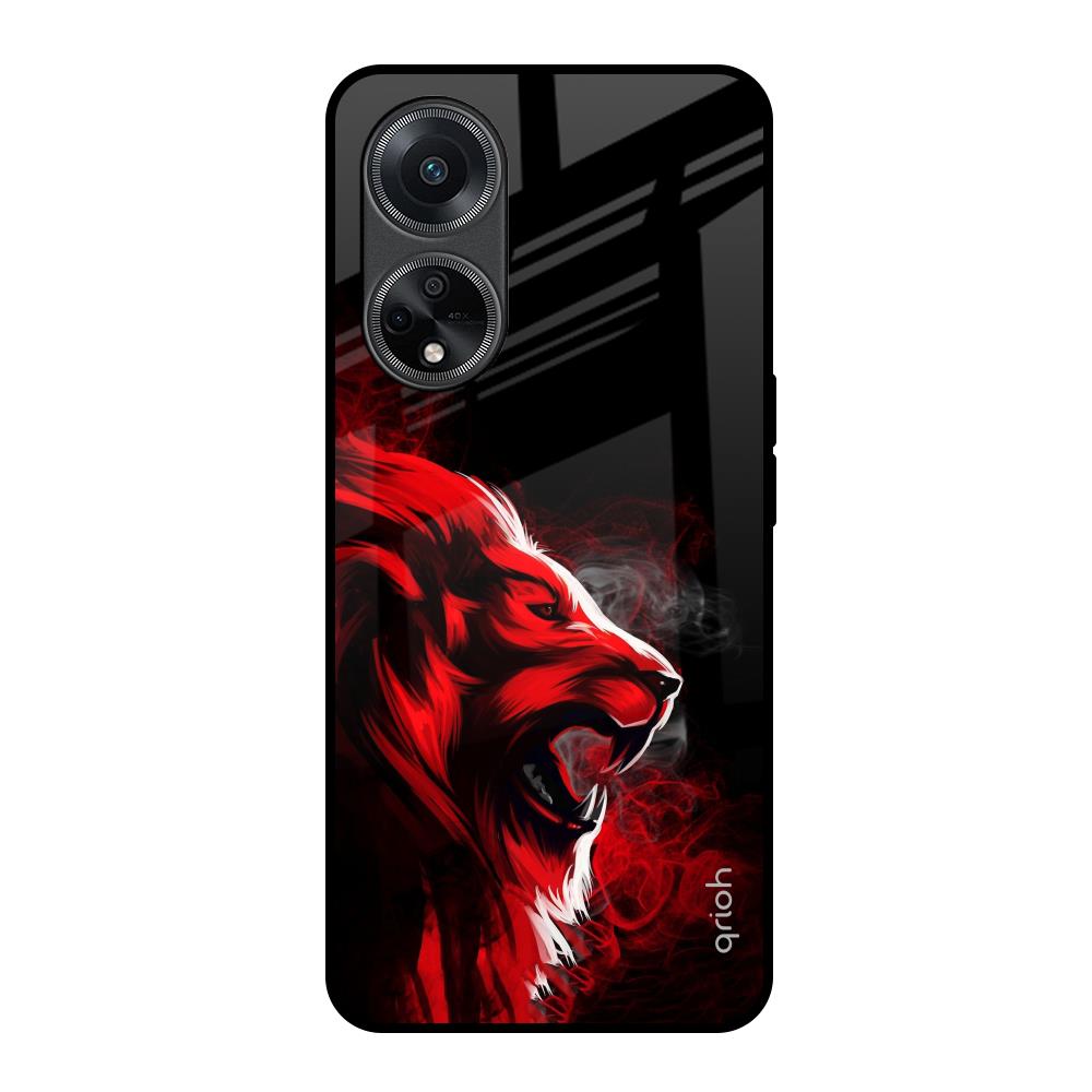 Red Angry Lion Glass Case for Oppo F23 5G