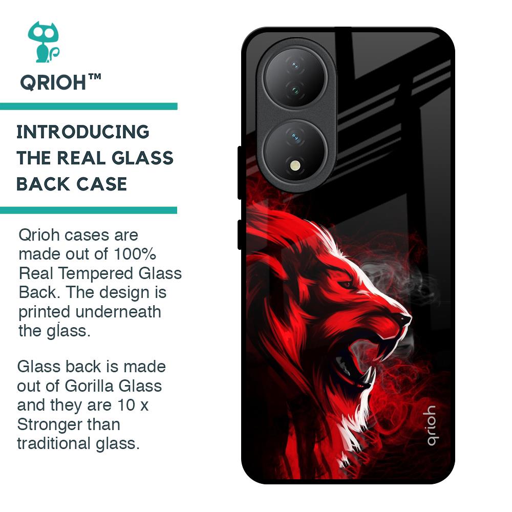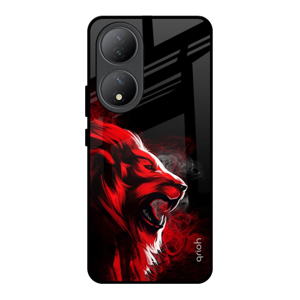 Red Angry Lion Glass Case for Vivo Y100 5G