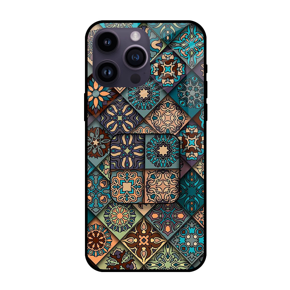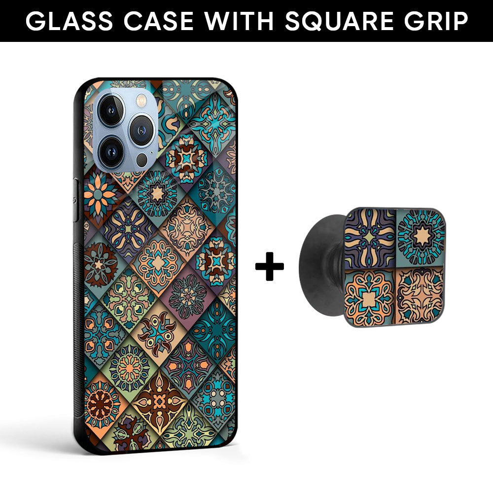 Retro Art Glass case with Square Phone Grip Combo