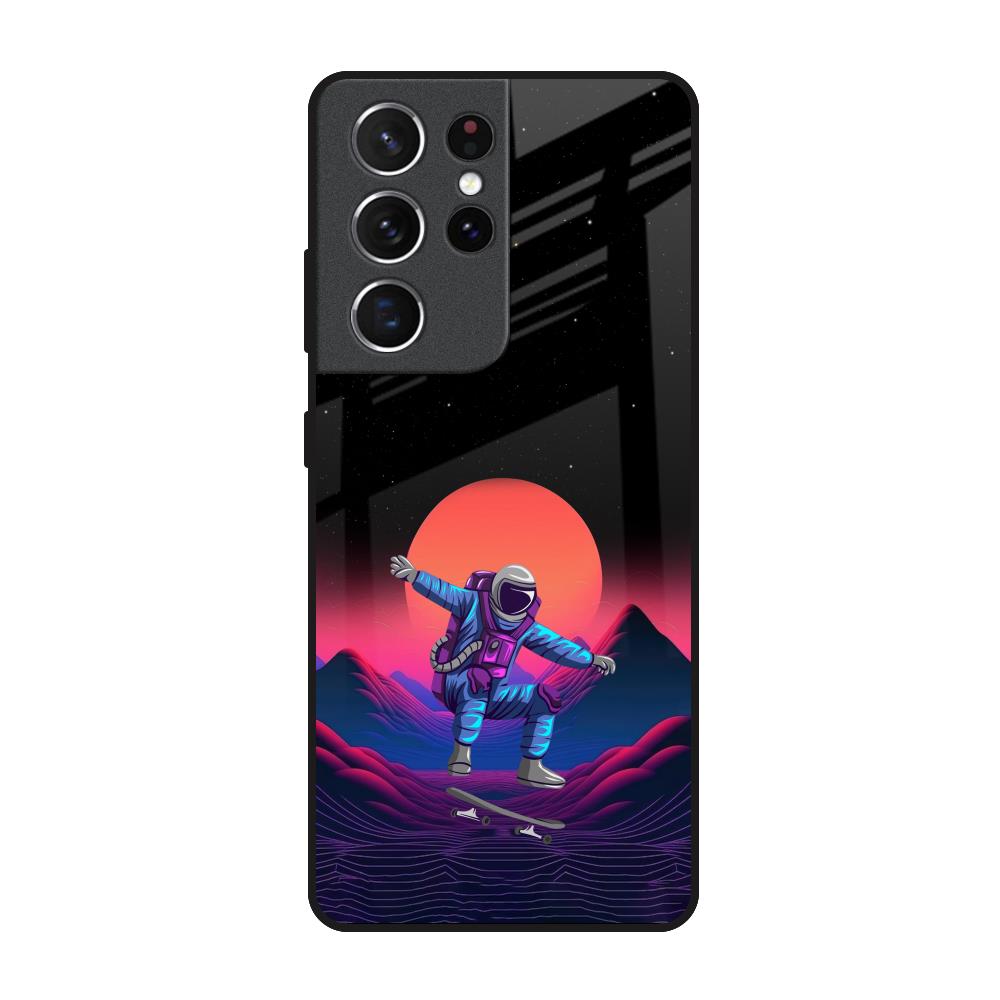 Retro Astronaut Glass Case for Samsung Galaxy S21 Ultra