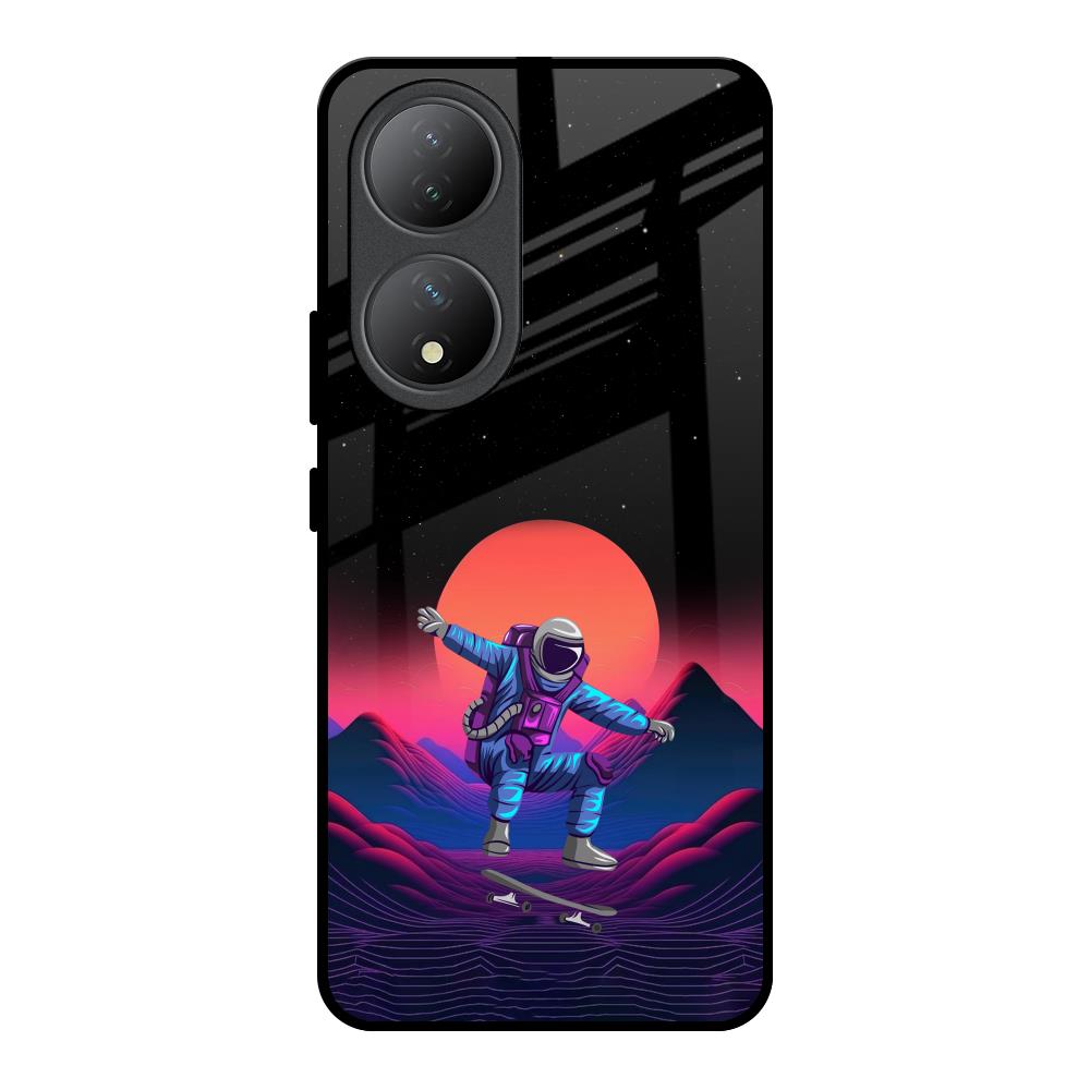 Retro Astronaut Glass Case for Vivo Y100 5G