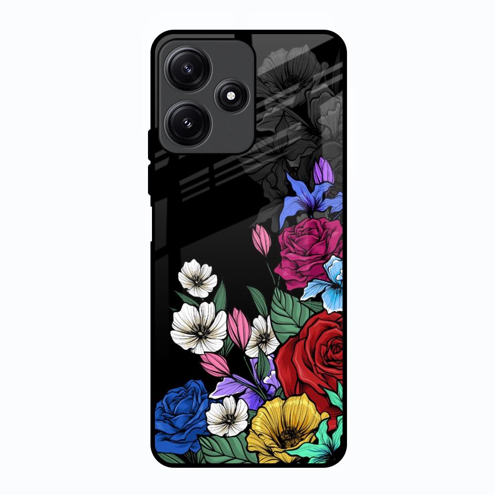 Rose Flower Bunch Art Glass Case for Poco M6 Pro 5G