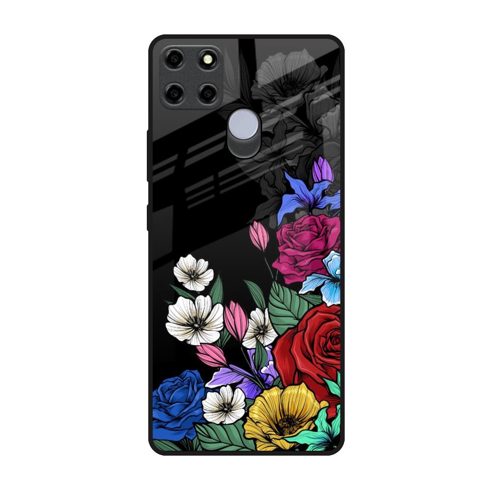 Rose Flower Bunch Art Glass Case for Realme C25