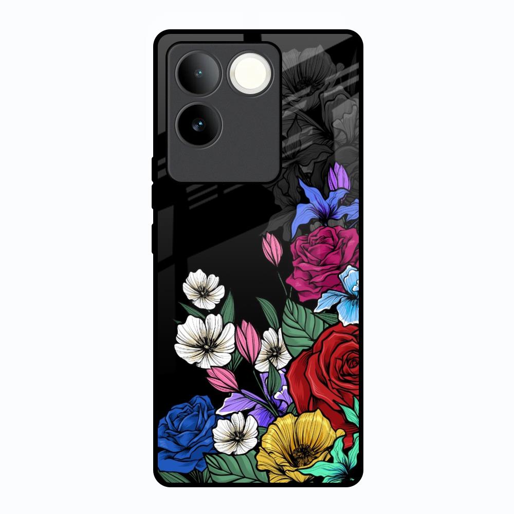 Rose Flower Bunch Art Glass Case for Vivo T2 Pro 5G