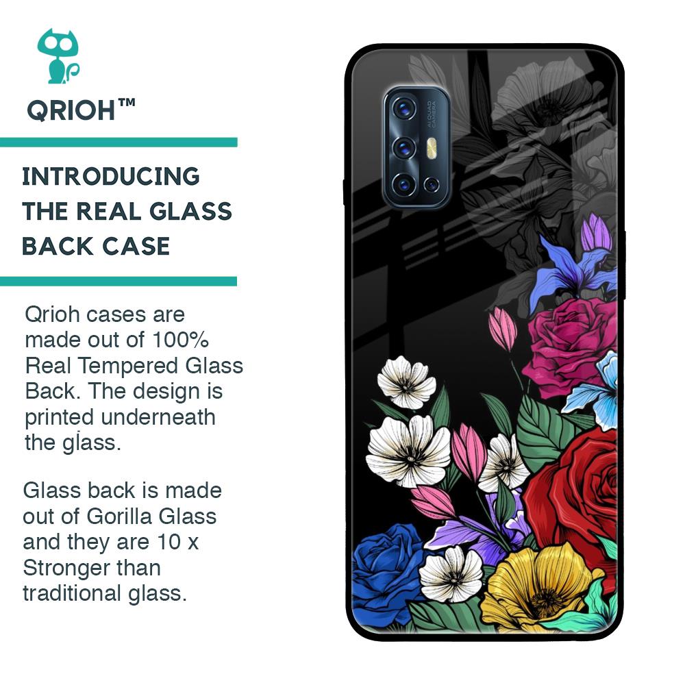 Rose Flower Bunch Art Glass Case for Vivo V17