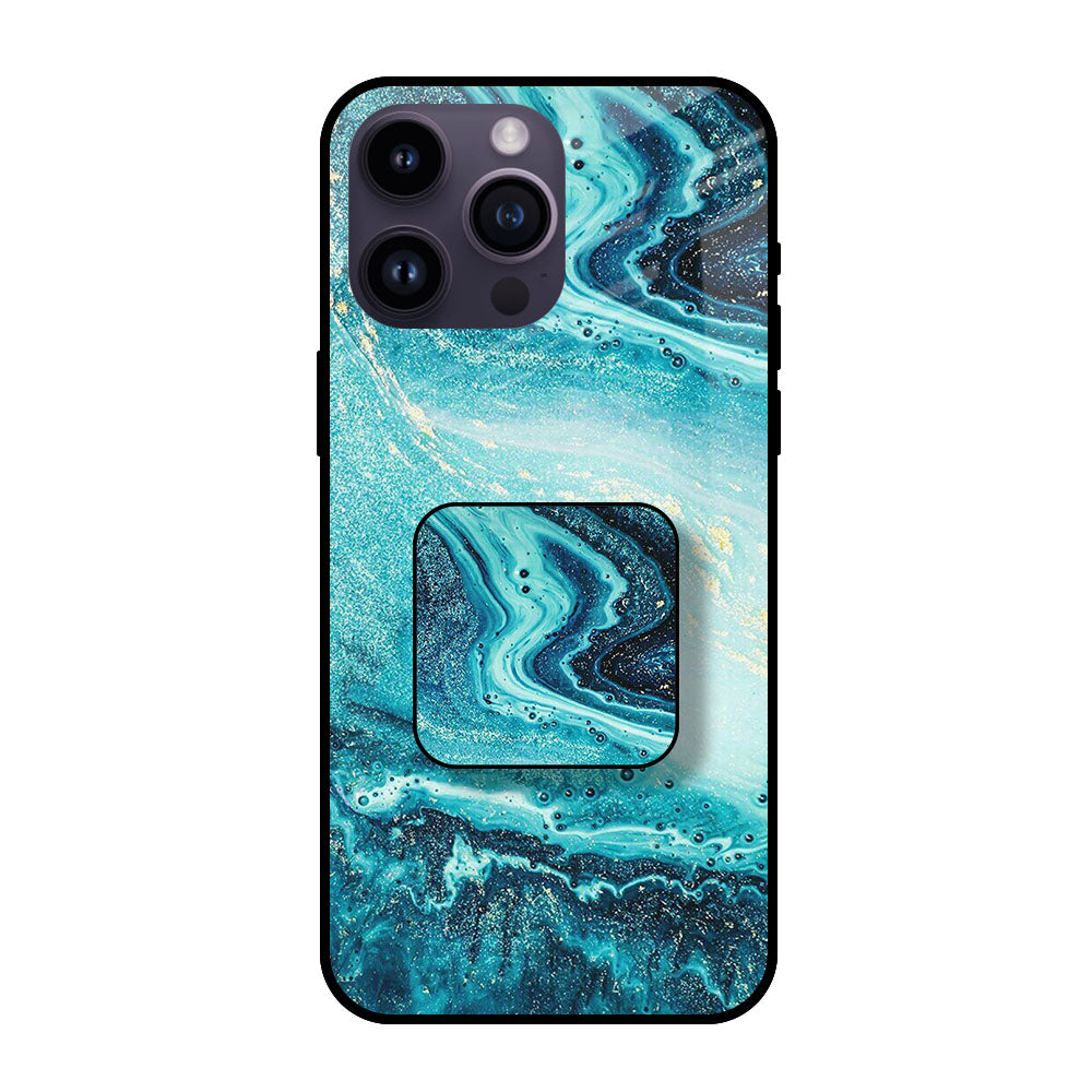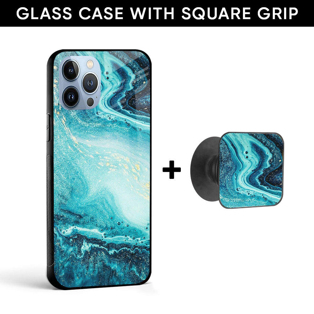 Sea Water Glass case with Square Phone Grip Combo