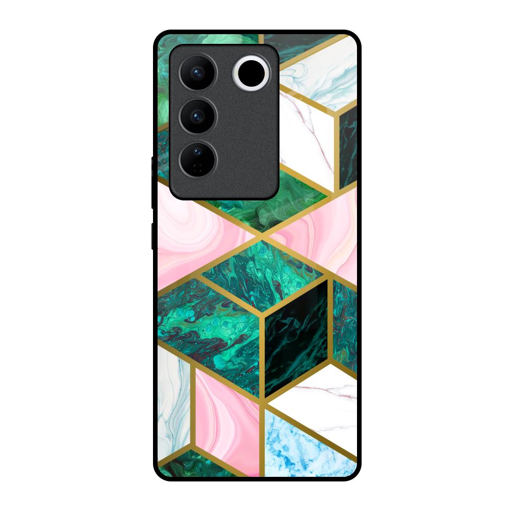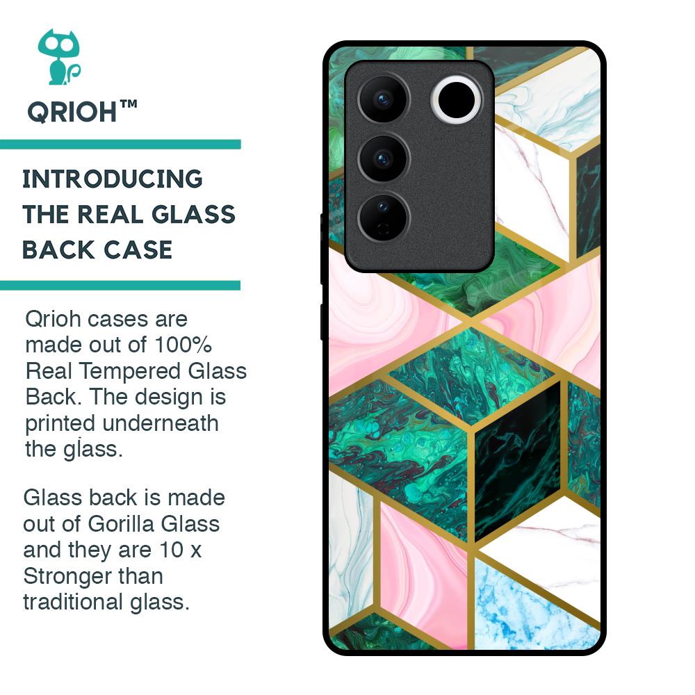 Seamless Green Marble Glass Case for Vivo V27 Pro 5G