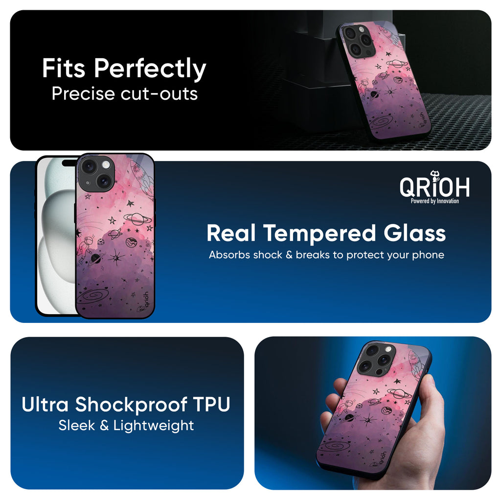 Space Doodles Glass Case for iPhone 16 Plus