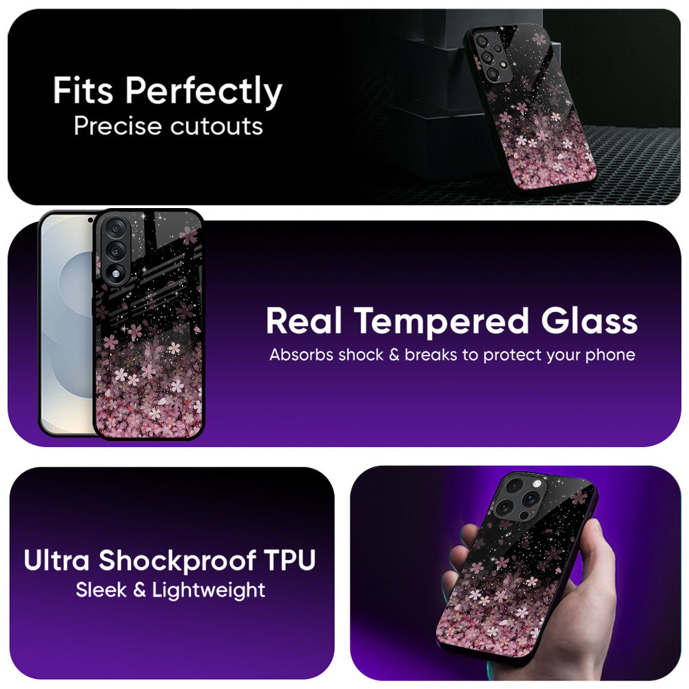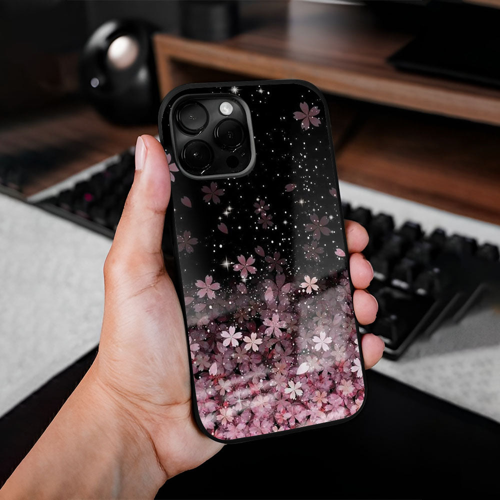 Sparkling Pink Petals Glass Case