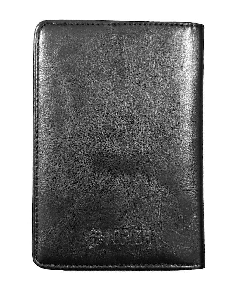 Qrioh Passport Covers are made with Vegan Leather. No Animals were harmed in the manufacturing of this Passport Cover. This Passport Cover contains space for 1 Passport, Credit Cards, Boarding Pass and Cash.